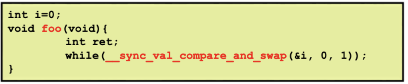이때 i는 1인데 0과 다르므로 값은 변경하지 않고 이전 값 1을 리턴한다. 그럼 while문에 true로 걸려서 infinite loop를 돌게 된다. 즉 첫번째 쓰레드 이후에 쓰레드들은 foo를 호출하더라도 while밑에 critical section으로 진입하지 못한다.