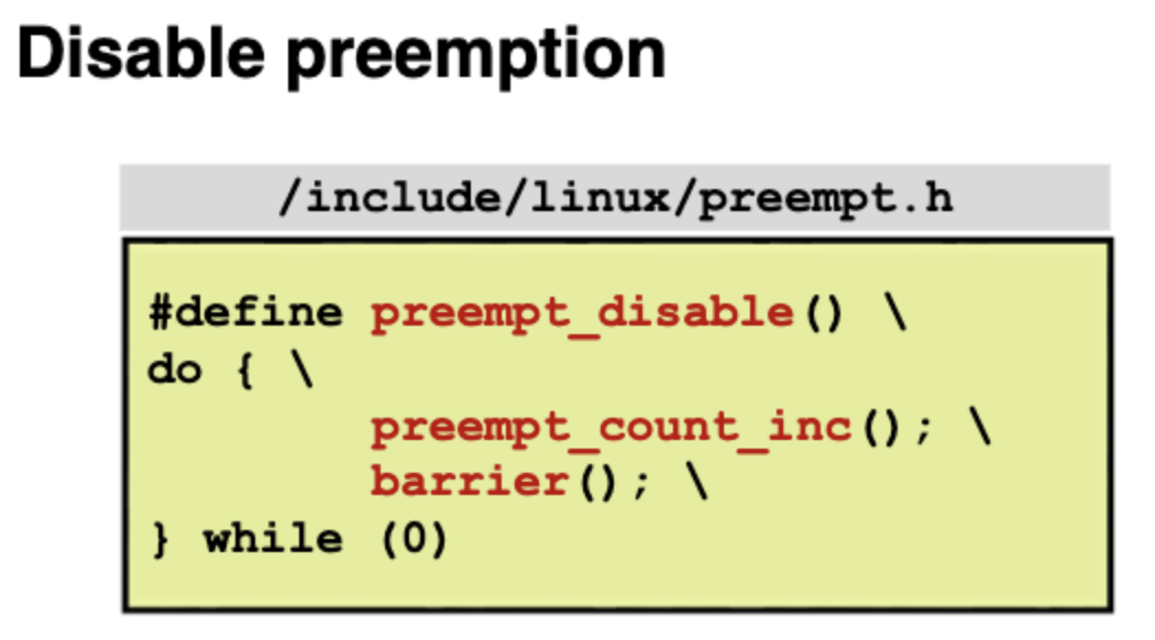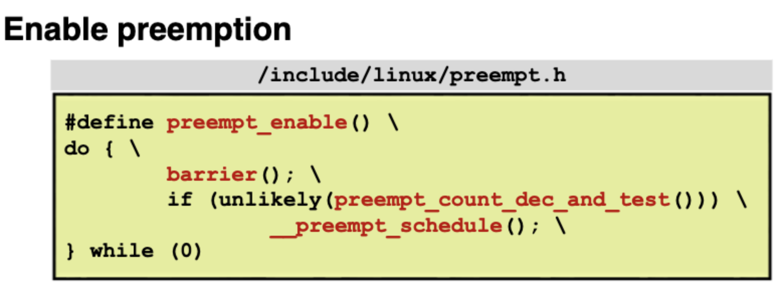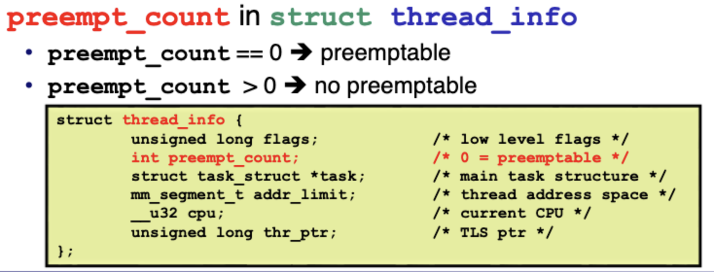 preempt_disable을 하면 preempt_count를 증가시키고 preempt_enable을 하면 preempt_count를 감소시킨다. preempt_count가 0이면 preemptable하다.