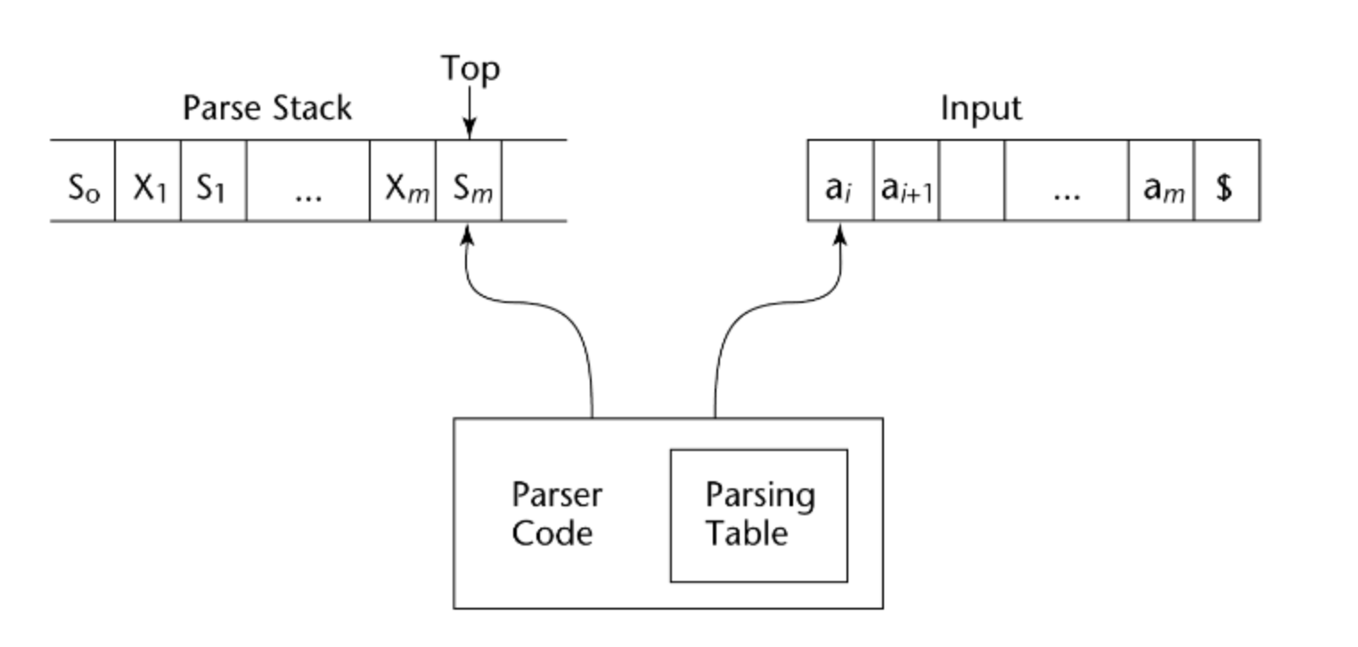 문법이 주어지면 아래처럼 table이 생성된다. 이걸보고 parser가 parsing을 수행하는데 모습은 아래와 같다.