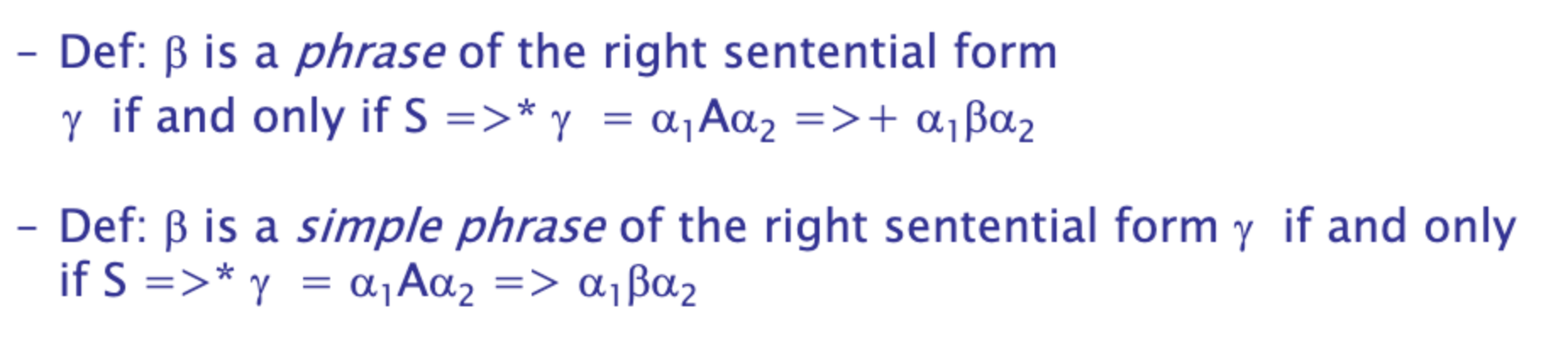 S에서 시작해서 여러번의 remove를 거쳐 αAw가 되고 여기서 remove를 한번 했을때 αβw가 된 상황에서 β를 handle이라고 한다.