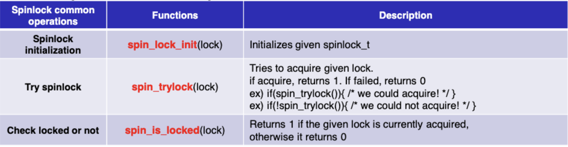 3. Spinlock APIs