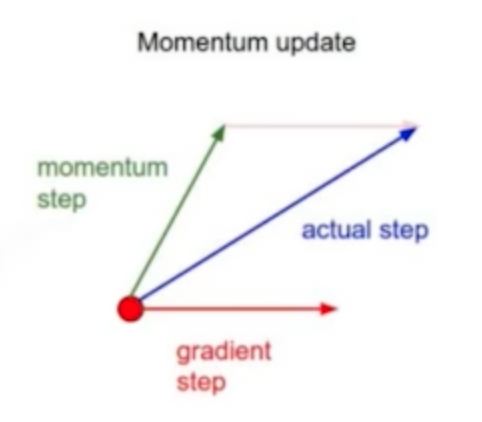- 새 batch에 대한 weight를 조정할 때, 이전 배치에서 계산한 gradient의 관성을 유지한다.