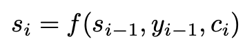 이 context vector(attention value)를 가지고 decoder가 s_t(결국엔 y_t)를 예측할 때 활용하는 것이다. decoder는 매 시점마다 ci를 구해서 사용한다.