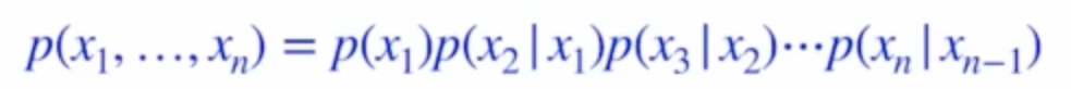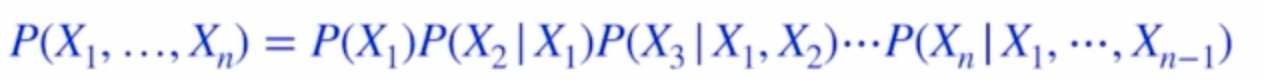 - p(x_1, ..., x_n) = p(x_1) p(x_2 | x_1) p(x_3 | x_1, x_2), ..., p(x_n | x_1, ..., x_n-1)