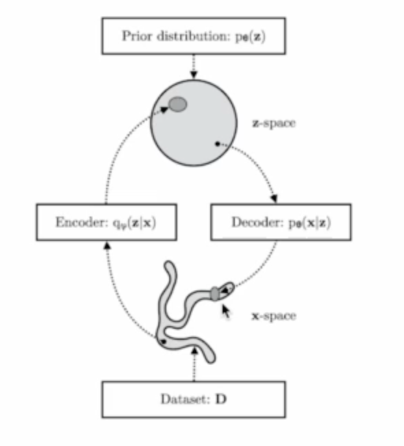 - 그럼 그 p_e(z), Latent 공간에서의 샘플을 가지고 decoder가 결과를 만들었을 때 posterior distribution와 비슷하도록 한다.