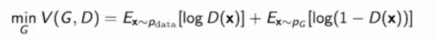 - z를 가지고 generator가 만든 결과 G(z)를 D가 보고 1이라고 하면 속이기 성공이다 그럼 V값은 음의 무한대가 되므로 V를 최소화하는 G를 찾으면 되고