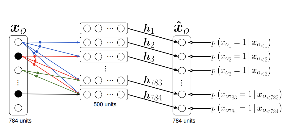 - 이렇게 순차적으로 한 픽셀씩 완성해가는, 순차적으로 정의되는 모델을 autoregressive model이라고 한다. 즉 과거 값들을 바탕으로 현재 값의 조건부 확률을 계산한다.