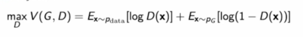 - 반대로 D가 G(z)를 보고 0, 가짜라고 잘 분별하면 V는 0, 최대값을 갖는다. 따라서 V를 최대로하는 D를 찾는다.
