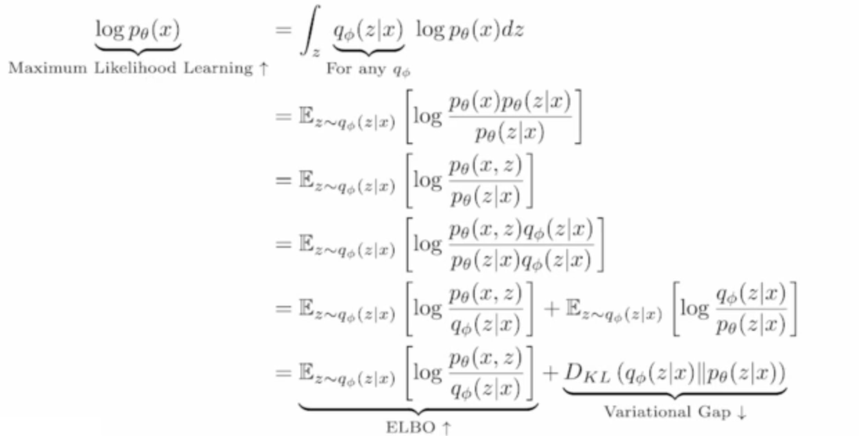 - 그러니 상대적으로 계산할 수 있는 ELBO 부분을 최대로 해서 variation gap을 줄이도록 한다.