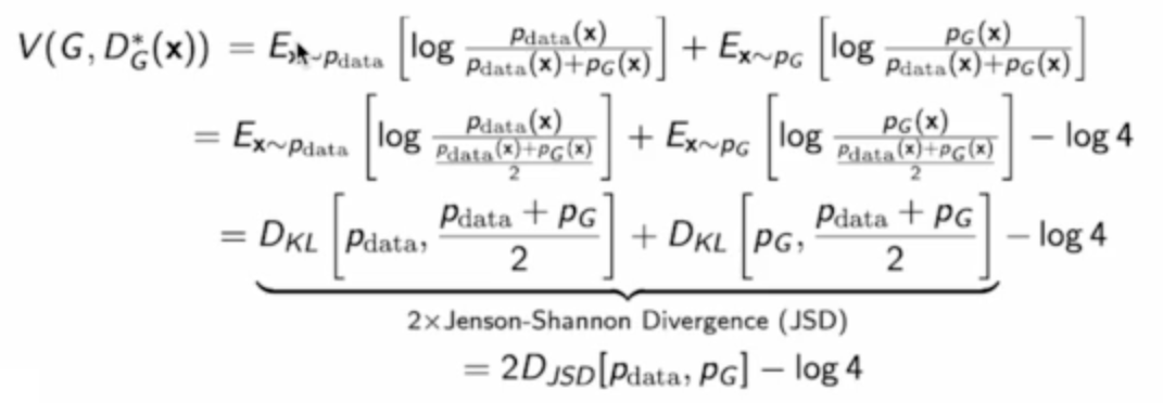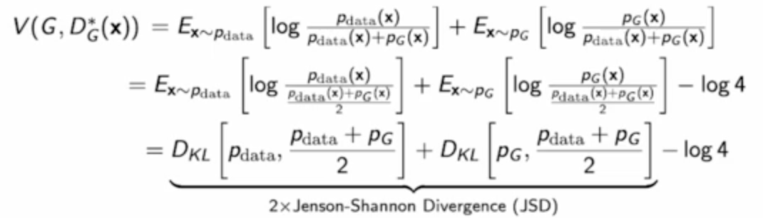 - 즉 이 Jenson-Shannon divergence를 최소화 하는 방향으로 모델이 학습하면 된다.