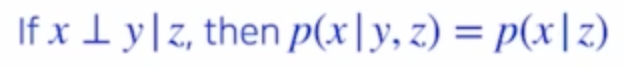 - x ㅗ y | z : z라는 random variable이 주어졌을 때, x와 y가 independent하다는 뜻이다.