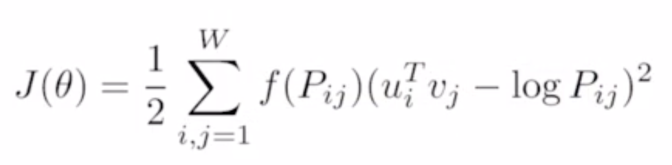 input word의 embedding vector, ui와 output word의 embedding vector vj의 내적값이 logPij와 가까워지도록 loss function을 정의한다. 이렇게 하면 word2vec의 중복되는 계산을 줄일 수 있다.