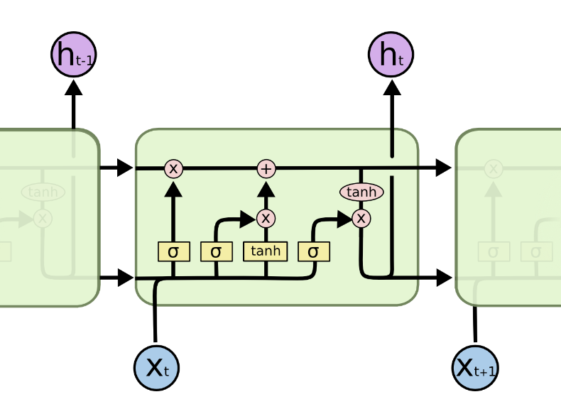 hidden state는 현재 time step에서 예측값 layer의 입력으로 사용 될 벡터라고 할 수 있다. cell state의 많은 정보 중에서 지금 당장 필요한 정보만을 filtering한 벡터라고 볼 수 있다.