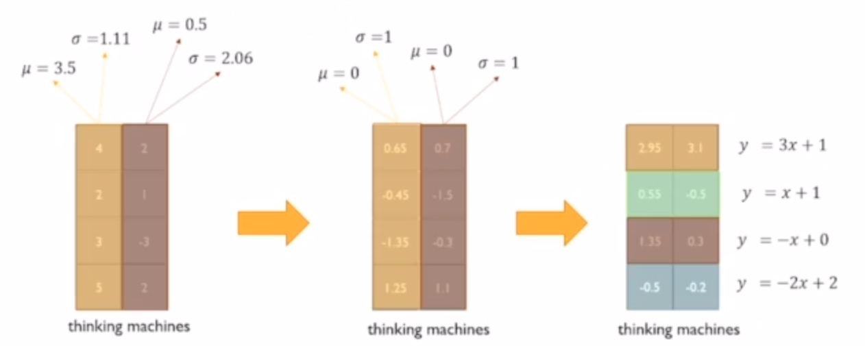 layer norm : thinking, machine 두 단어로 구성된 sequence가 있다고 해보자. 각 단어가 갖는 vector를 N(0,1)로 만든다. 그 이후 각 node별로 평균 분산을 주입한다.
