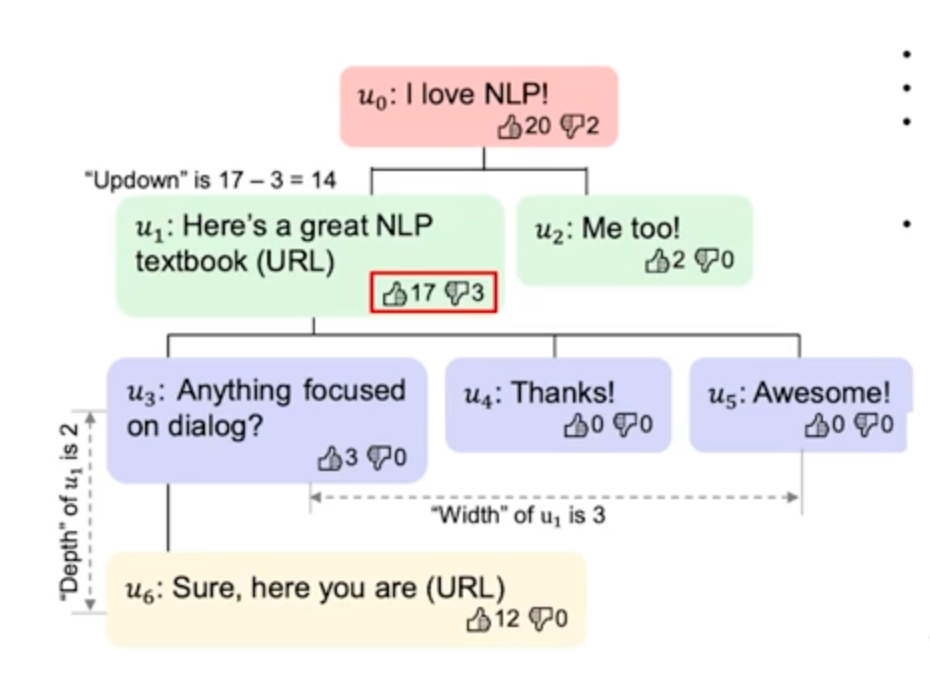 대표적으로 DialogRPT가 있다. human feedback과 GPT2의 상호작용으로 학습된 모델이다.