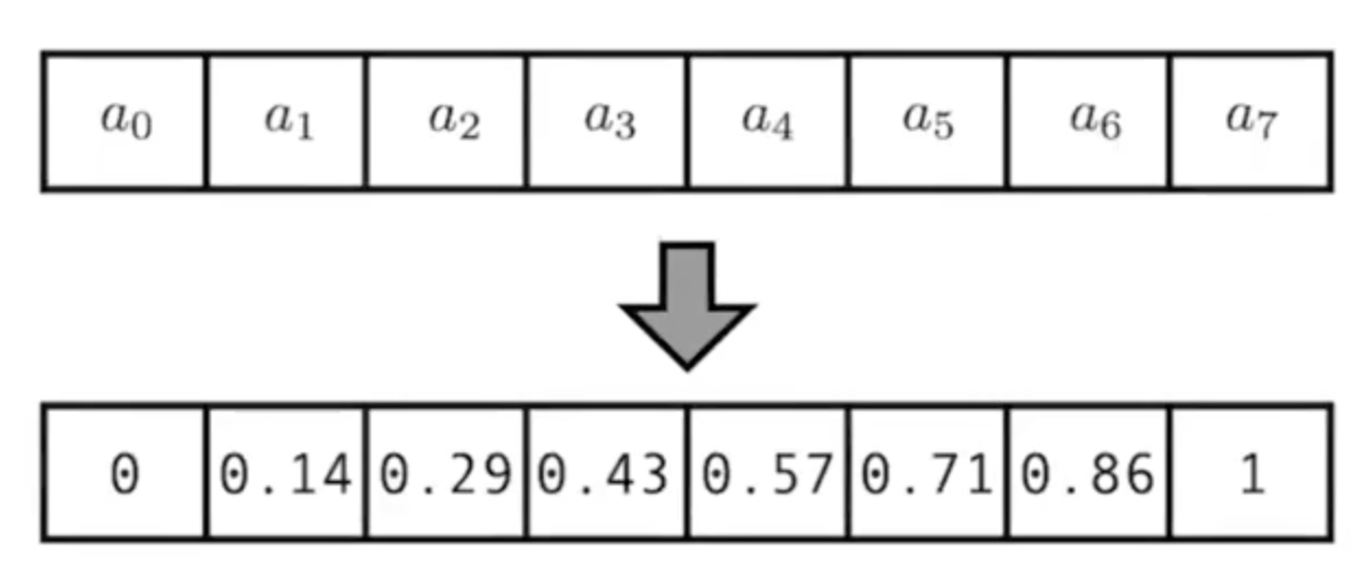그래서 이번에는 2진수를 활용했다. 단어의 embedding size가 위 그림처럼 3이라면 0, 1, 2, 3,...,7을 2진수로 바꿔서 더해주는 것이다. 하지만 [0,0] -> [0,1] -> [1,0] 이 Position vector 값들이 연속적이지 않은 문제들이 있었다.