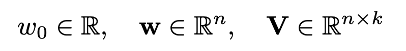 데이터를 통해 모델을 구성하는 위 세가지를 구해야한다. (k는 factorization의 차원을 결정하는 하이퍼파라미터이다)