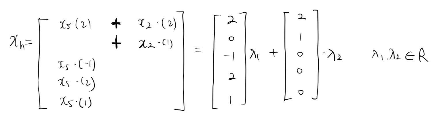 particular solution : x_p = [2, 0, -1, 1, 0]