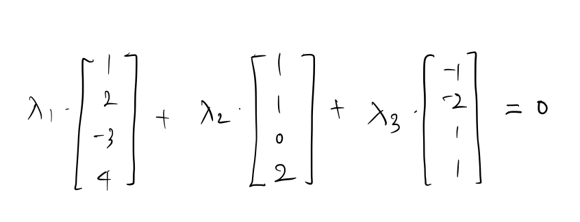 If we can find a non-trivial solution (λ1, λ2, λ3), it means that one of them is a linear combination of the others, which means this set of vectors is dependent.
