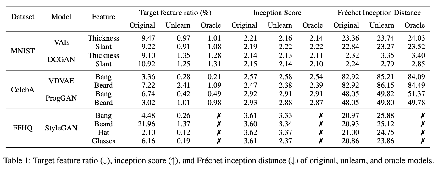 Suggest a novel method of feature unlearning from pre-trained image generative models(GANs, VAEs)