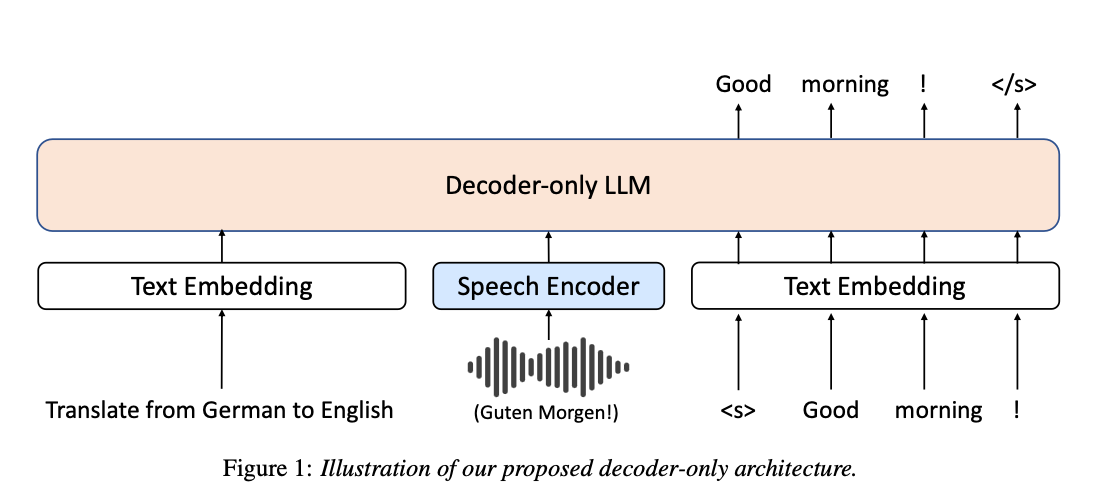 propose a decoder-only architecture that enables the LLM to directly consume the encoded (continuous, not discretized tokens) speech representation and generate the text translation (adapts a decoder-only LLM to the speech-to-text translation task)