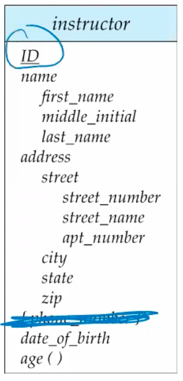 - composite attributes에서 leaf node만 flatten되어 나온다.