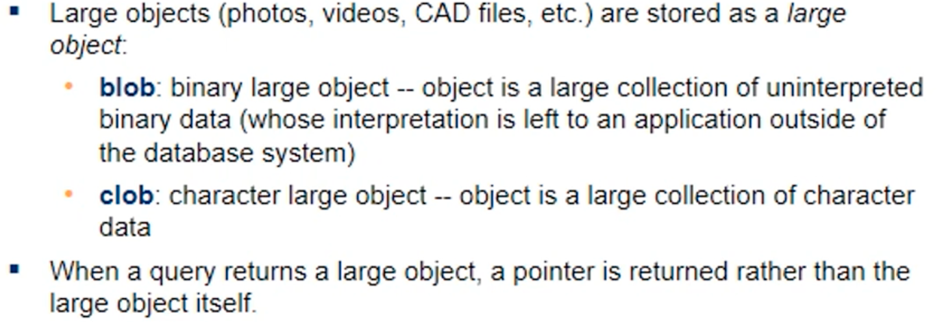 - 또한 사진, 영상, cad file등을 위한 large-object type도 제공한다.