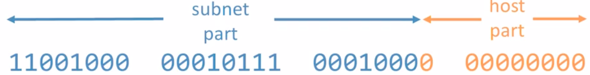 예를들어 223.1.1.0/24 라면 앞에서부터 24비트(223.1.1)가 subnet, 나머지 부분(0)이 host 부분이 된다.